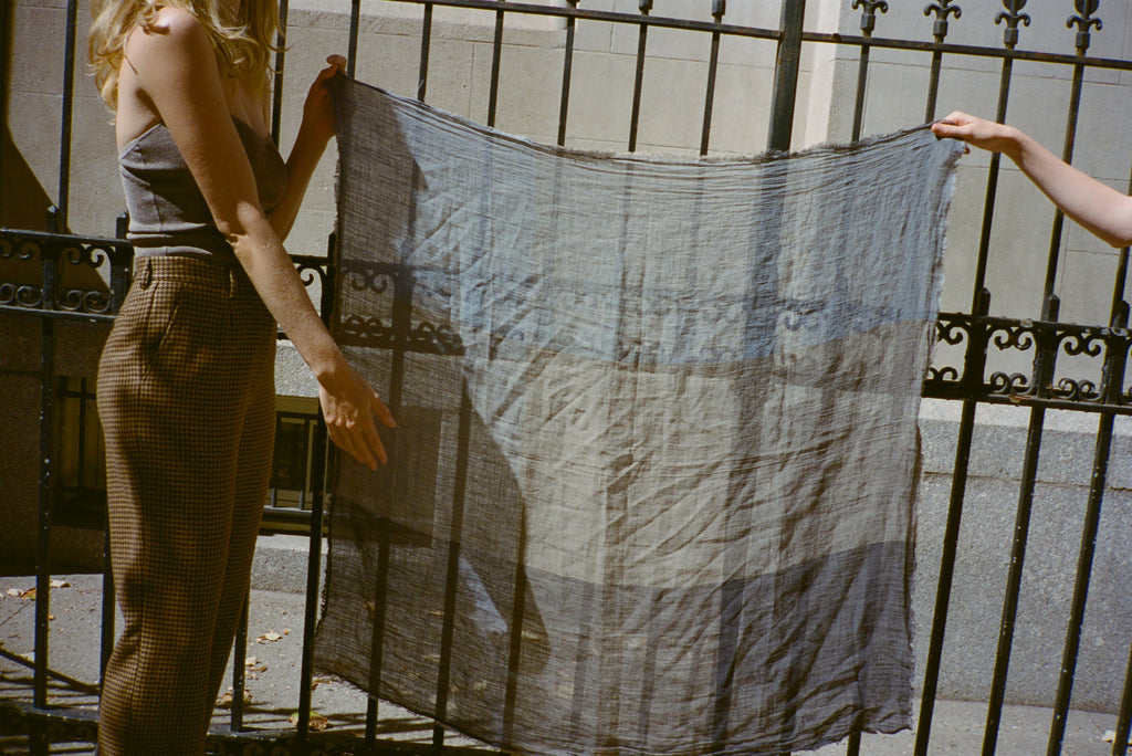 ISSEY MIYAKE BLUE AND GRAY SCARF