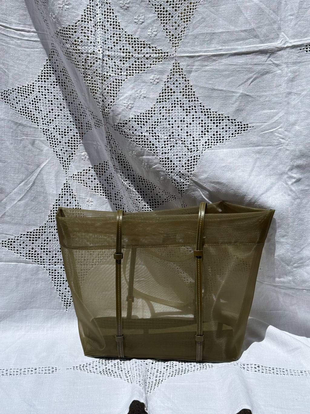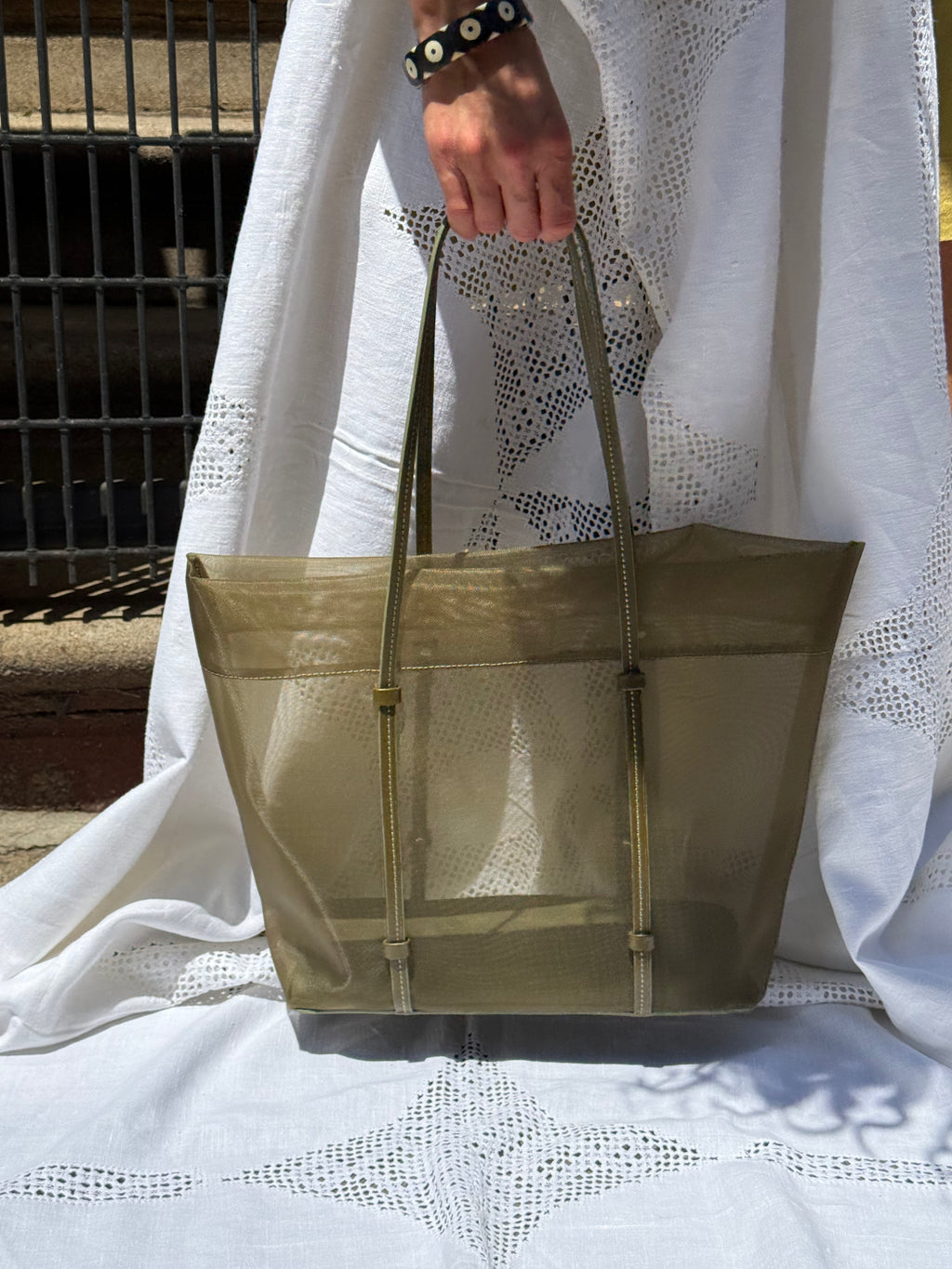 100% Metalized Mesh, Bottom and Handles 100% Leather