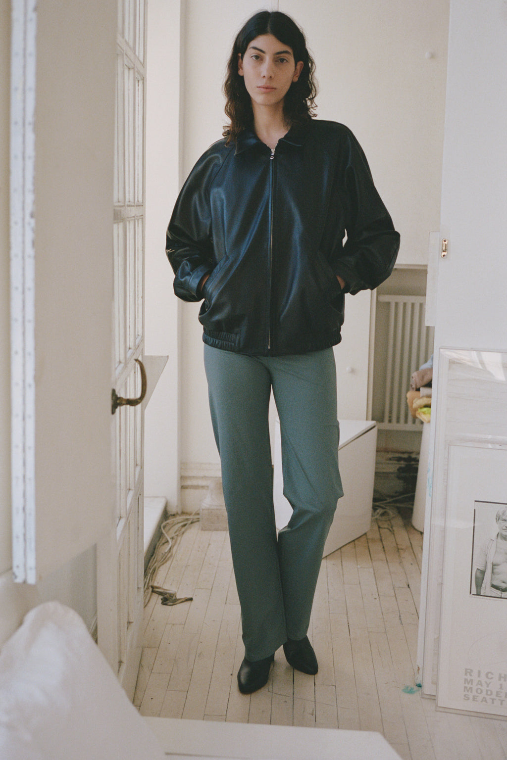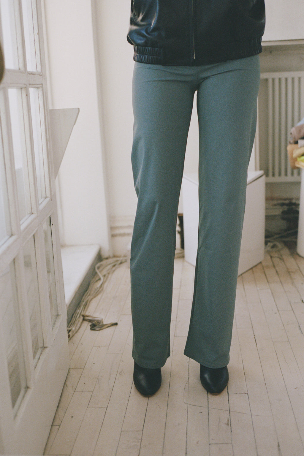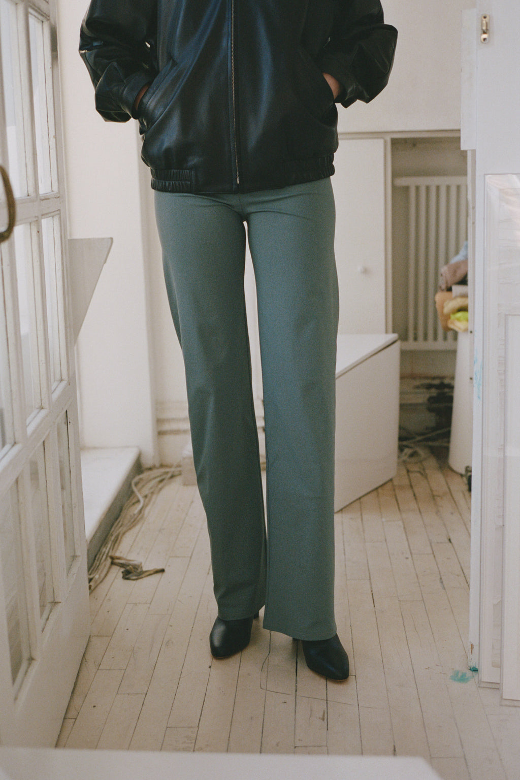 Straight-leg jersey pants with elasticated waist band. Mid-rise. True to size.