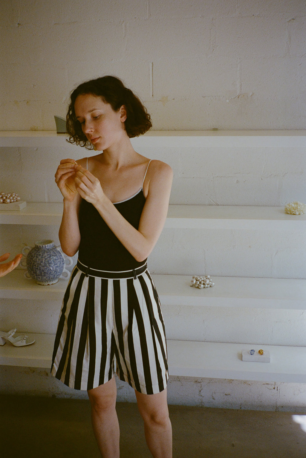 BLACK AND WHITE STRIPED BLOOMINGDALE SHORTS