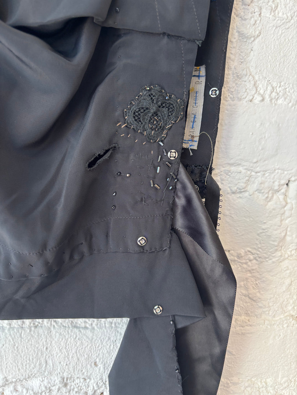 Please note all pieces are handmade, one of a kind and sold as is. They are deconstructed and are deliberately imperfect using secondhand materials and may show varying signs of age, wear, or even slight defects like holes or snags.