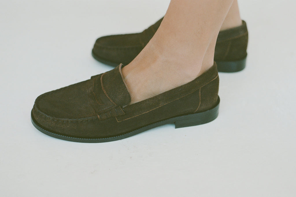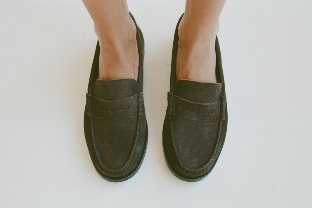 A classic slip on loafer. 2.5cm stacked heel. Fits true to size.