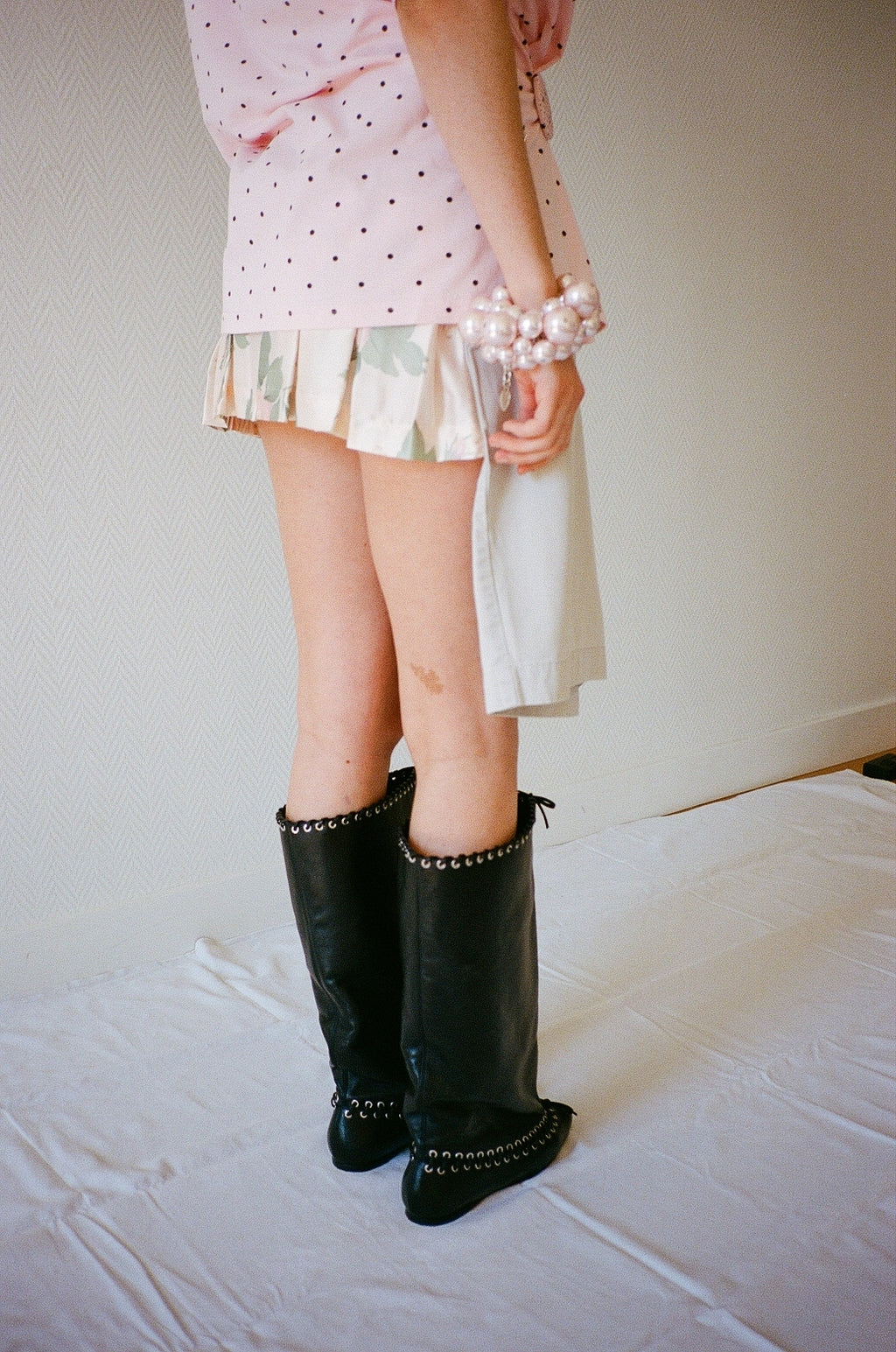 Knee high Level Boot, flat in black nappa leather with silver metal grommets and leather lacing. The boot has a rounded ballerina toe with a contrasting slouchy leather sleeve. Fits true to size. If in between sizes, we recommend sizing up.