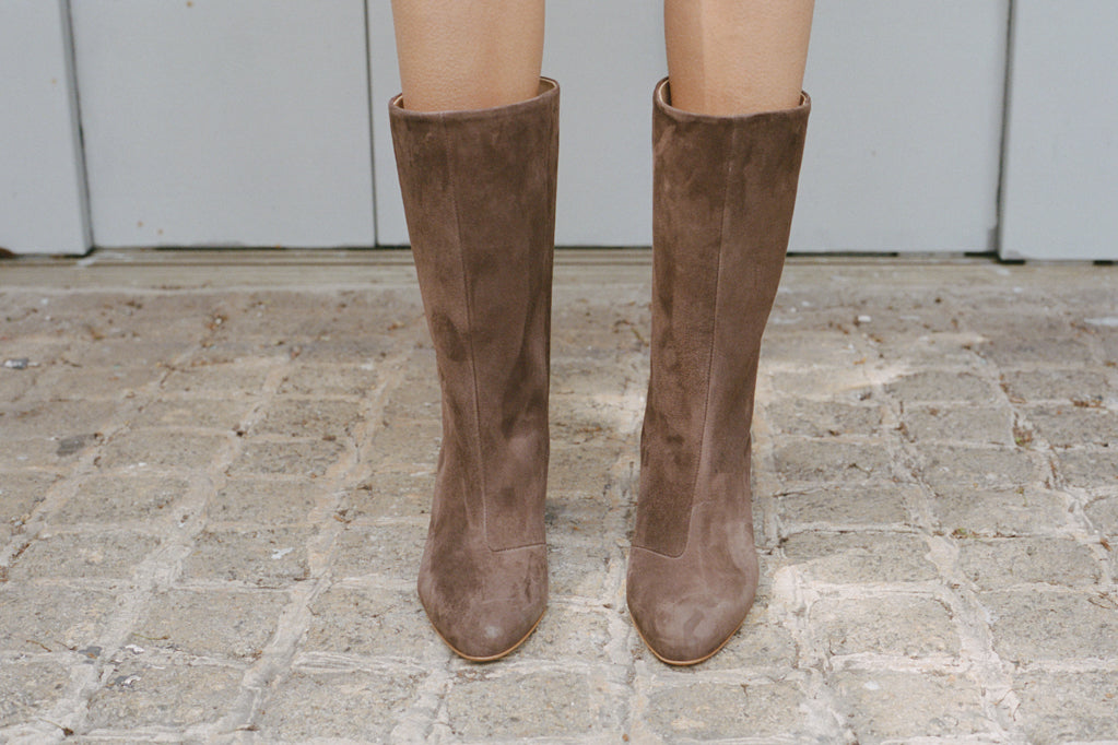 Heeled boot with almond shaped toe. Hits mid calf. 3in heel. True to size.