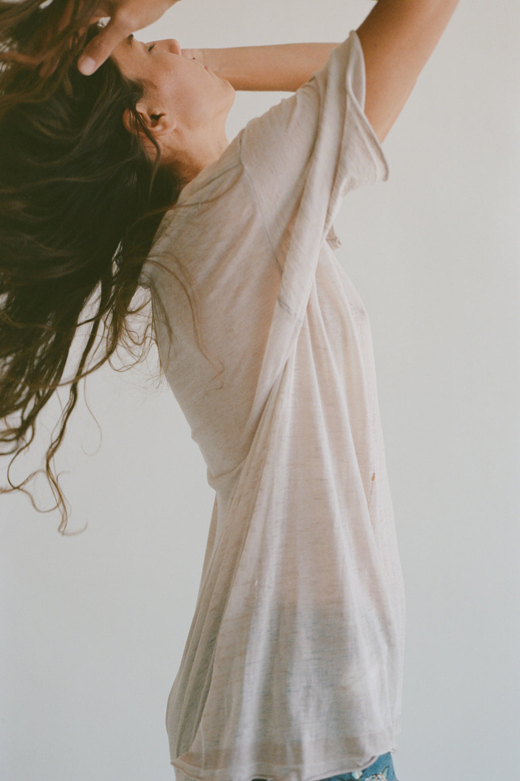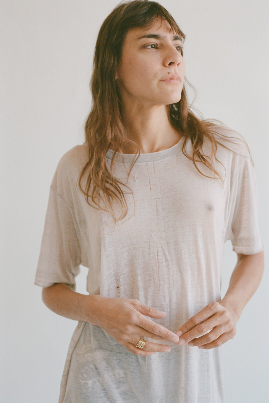 Vintage sheer t-shirt in grey with distressing throughout.