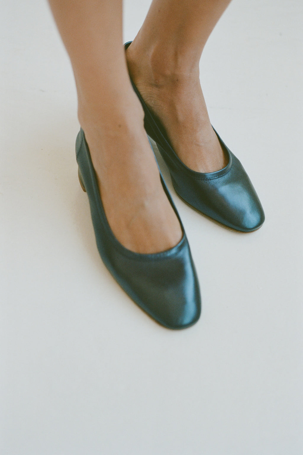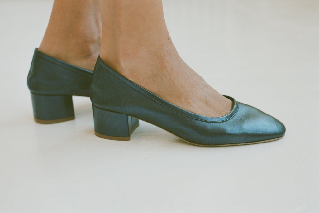 Slip on shoe in calf leather with almond toe and soft upper. 4cm stacked heel. Fits true to size.